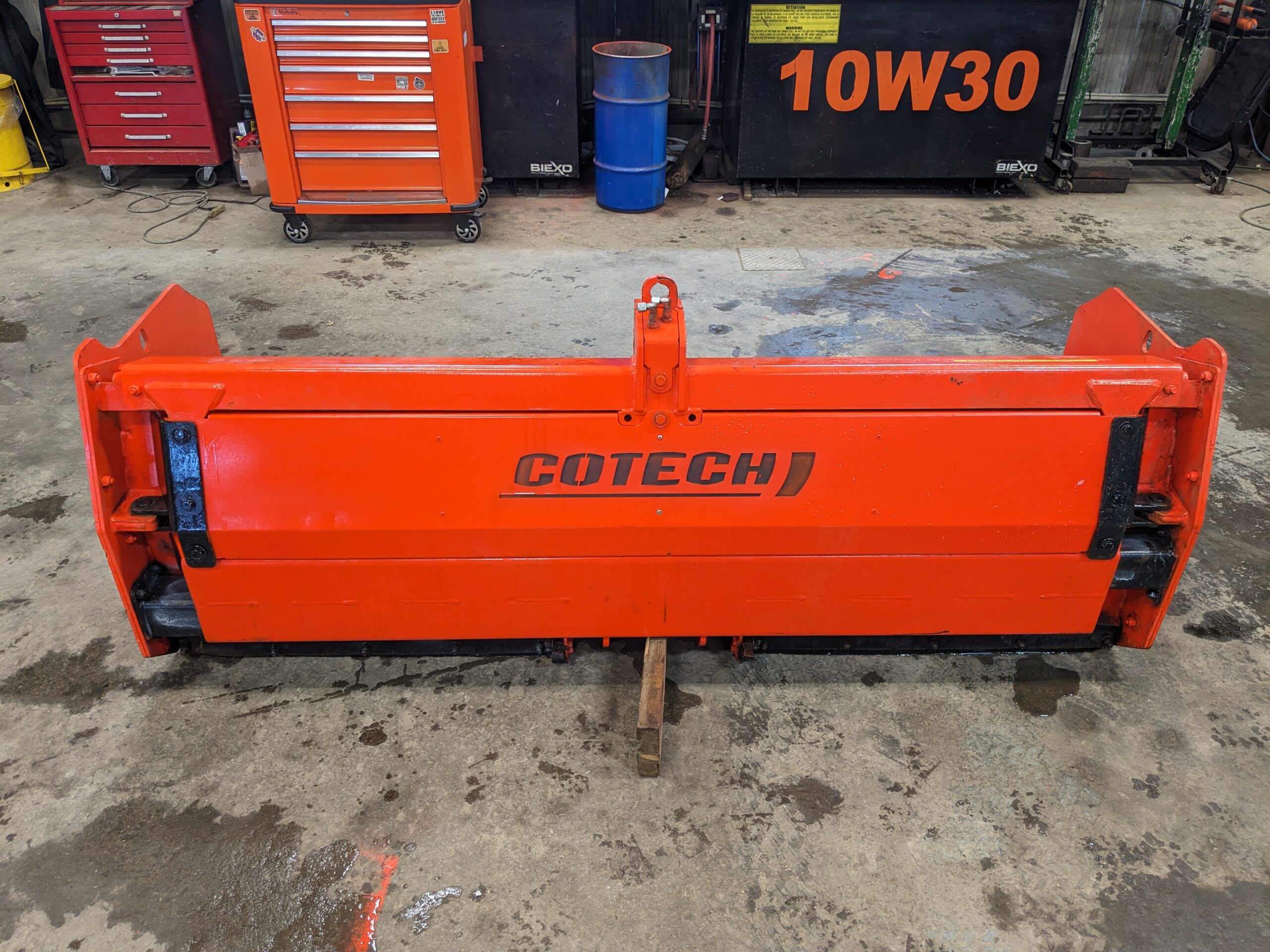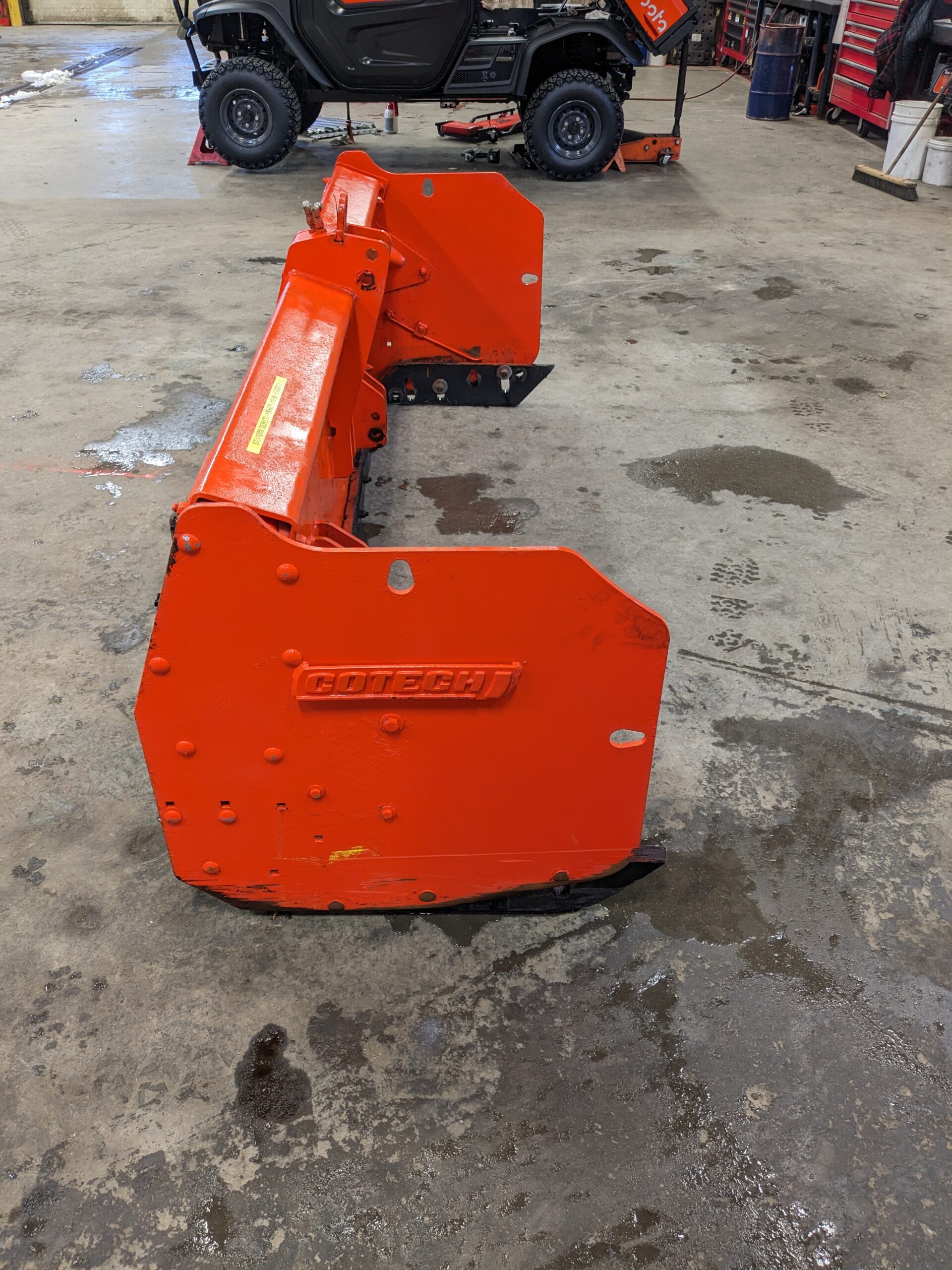 Gratte à neige Cotech Extensible EI30712 tirée (sans harnais), 7′ fermée, 12′ ouverte, couteaux caoutchouc. Peut s’installer à l’avant d’un tracteur sur un harnais ou l’arrière sur le 3 points.