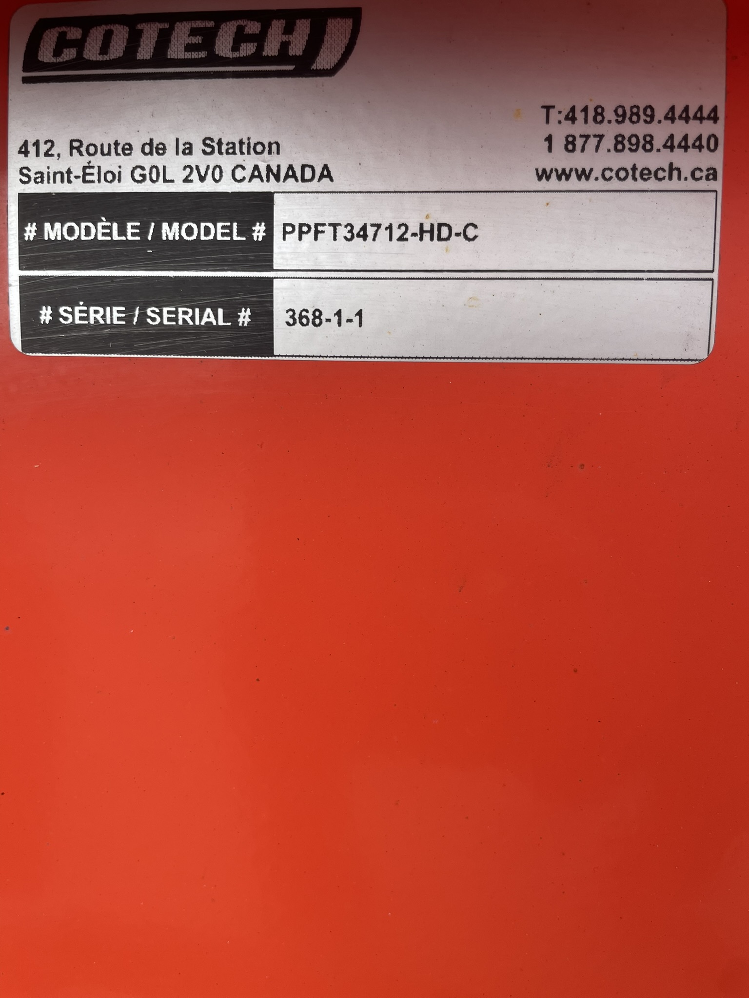 Gratte à neige Cotech PPFT34712HD, (2023), tirée, 7 pi fermée, 12 pi ouverte, sans le harnais, idéal pour Tracteur Kubota M5-091, M5-111, M6-101, M6-111.