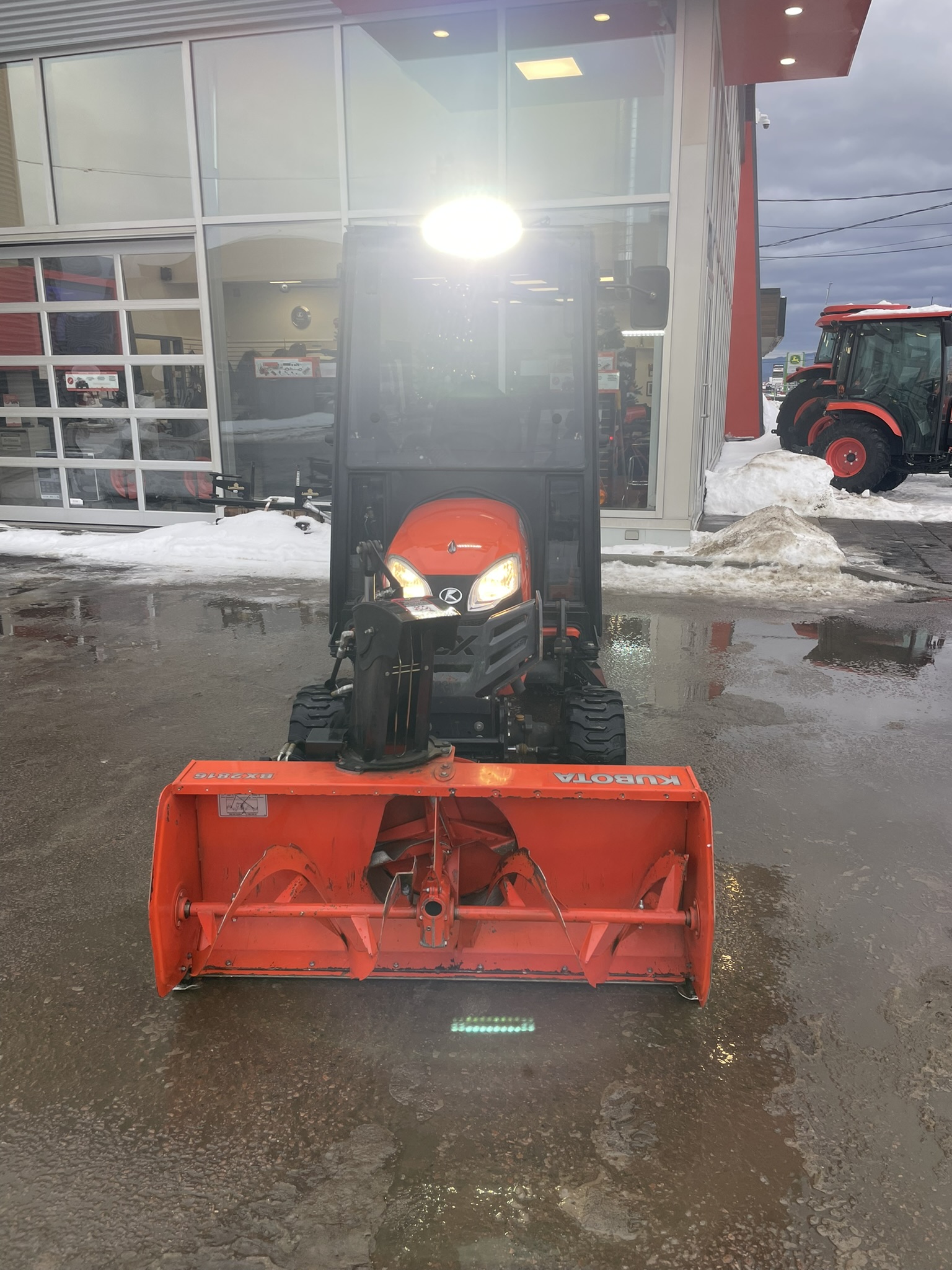 Tracteur Kubota BX23S (TLB), 2018, 798 heures, 4×4, transmission hydrostatique, moteur diesel, 2 sorties d’huile hydrauliques arrières. Cabine Tektite avec chauffage, barre aux led av-ar